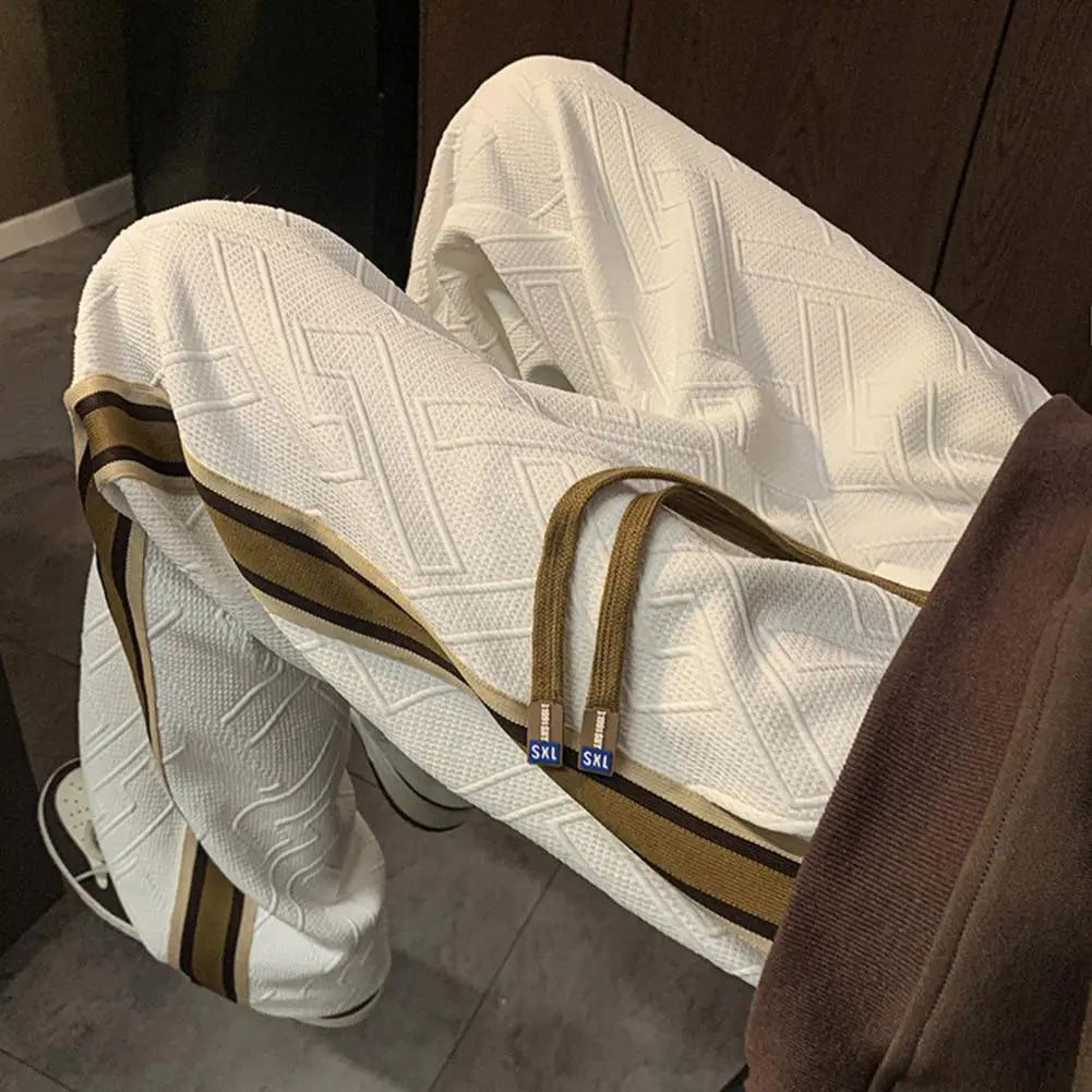 These hip hop-inspired pants feature a loose, wide-leg design with an elastic waist and drawstring for a comfortable, adjustable fit. Crafted with a stylish motif on the fabric, these trousers are perfect for streetwear enthusiasts, offering a unique and versatile option.